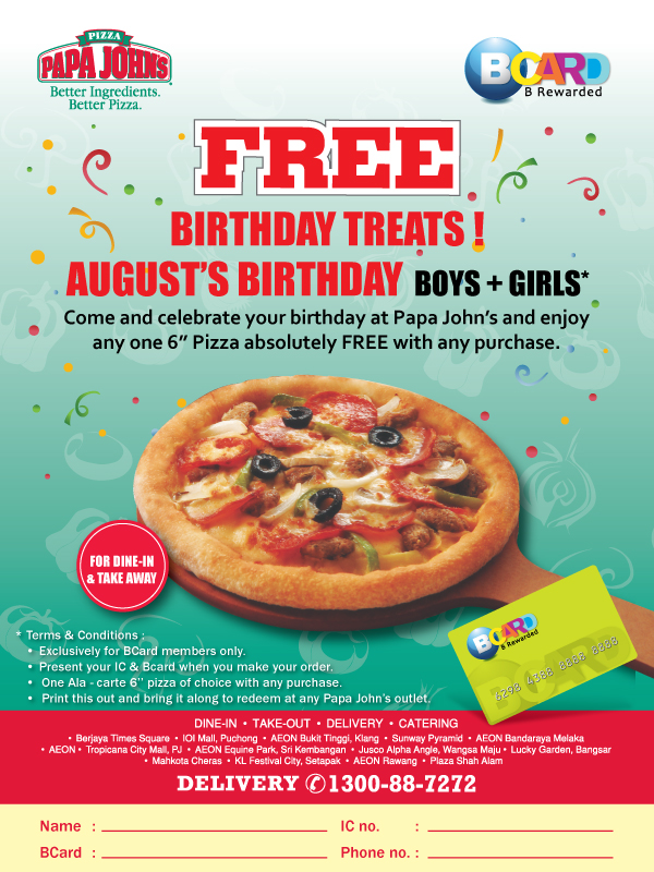 I Love Freebies Malaysia Birthday Promotions Papa John S Free 6 Pizza