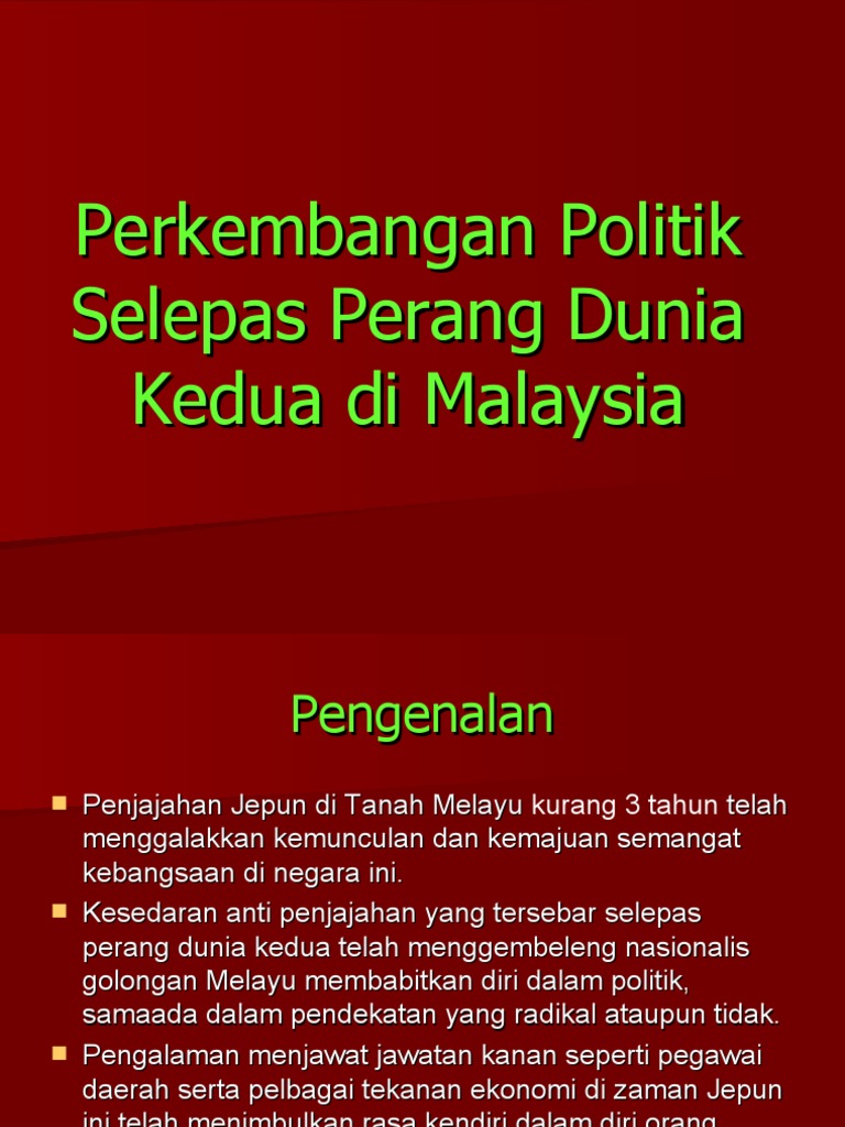 Perkembangan Politik Selepas Perang Dunia Kedua Di Malaysia